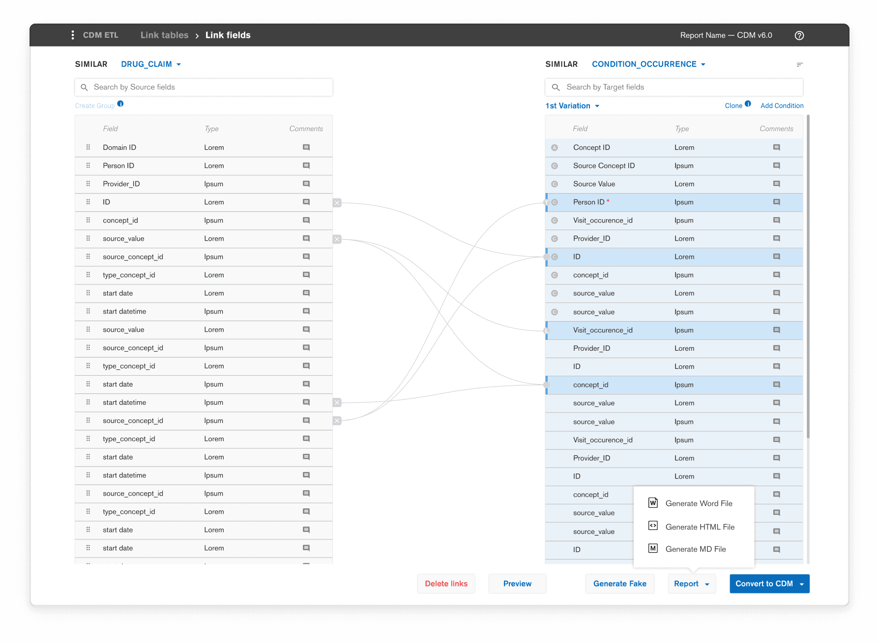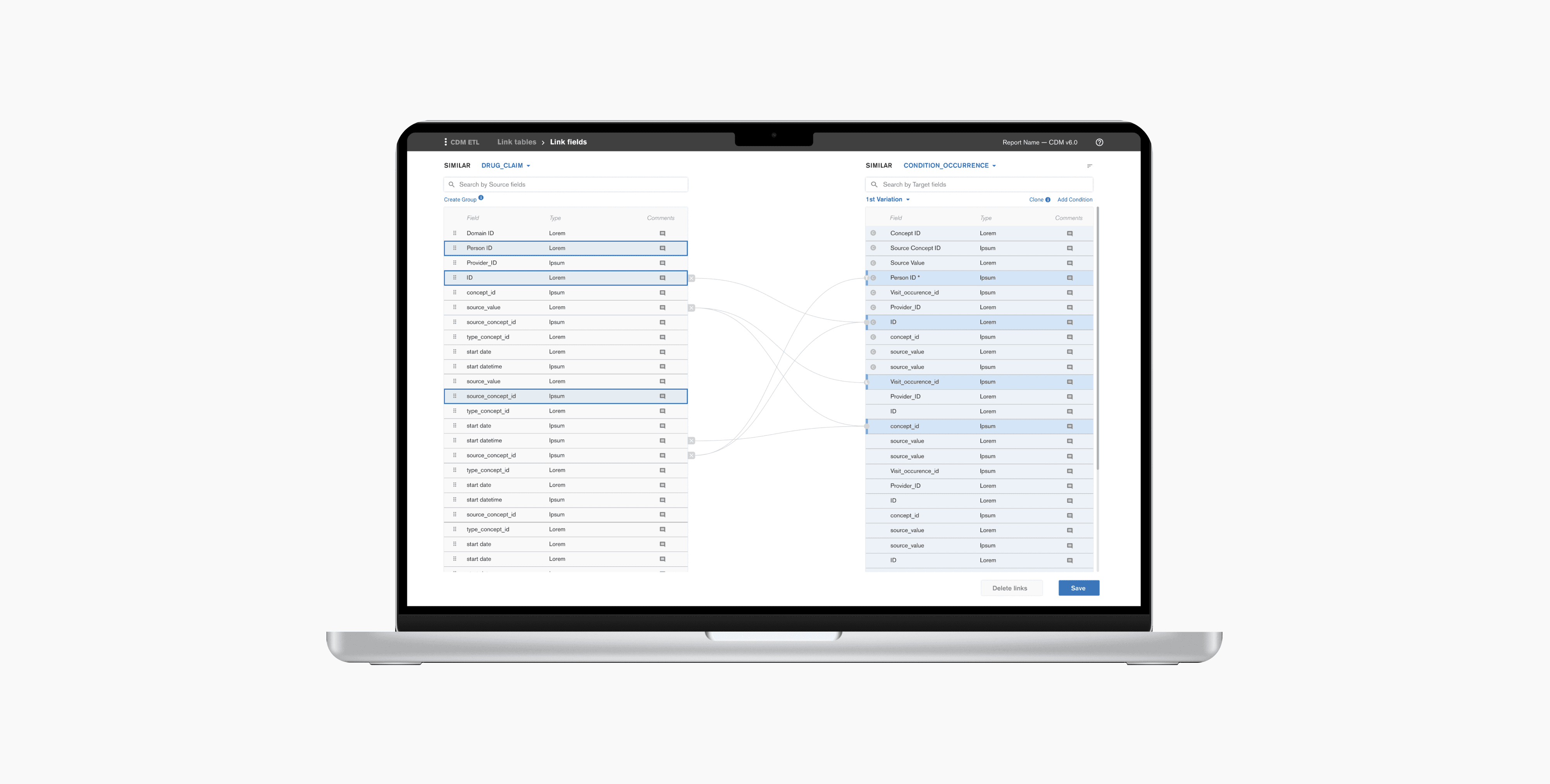 Visual links and an easy-to-use control system allow users to map source and target tables and fields with minimal friction.