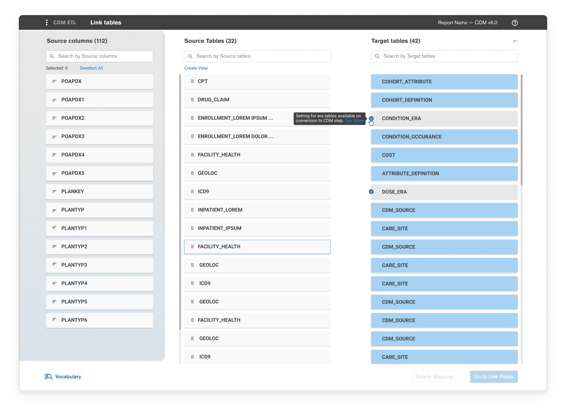 Drag-and-drop features for linking source and target tables, making the process easier to manage.