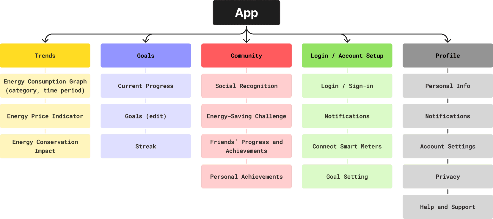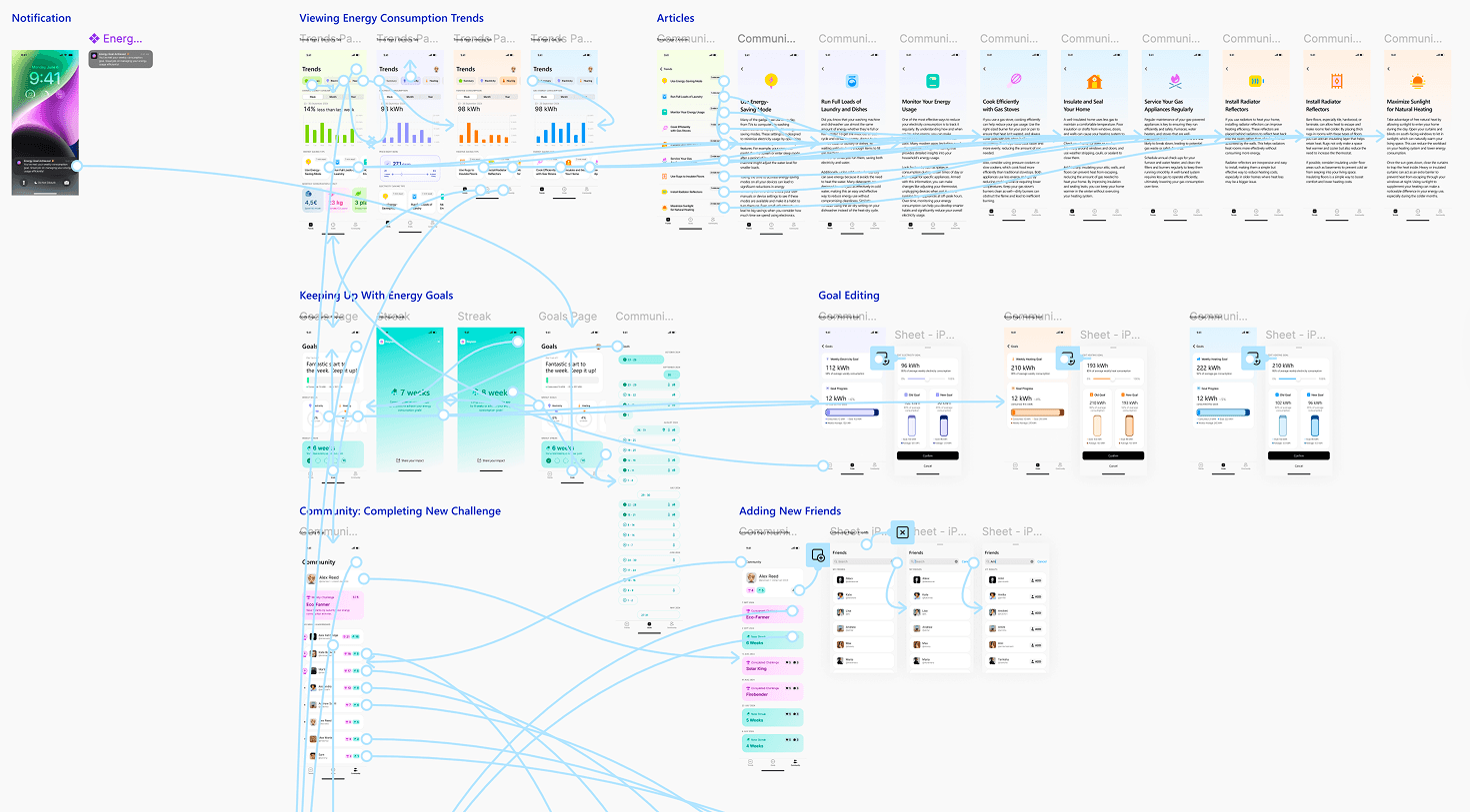 Users can define personal energy-saving goals, follow their progress, and receive feedback on achievements. This flow introduces direction and turns passive monitoring into goal-oriented behaviour.