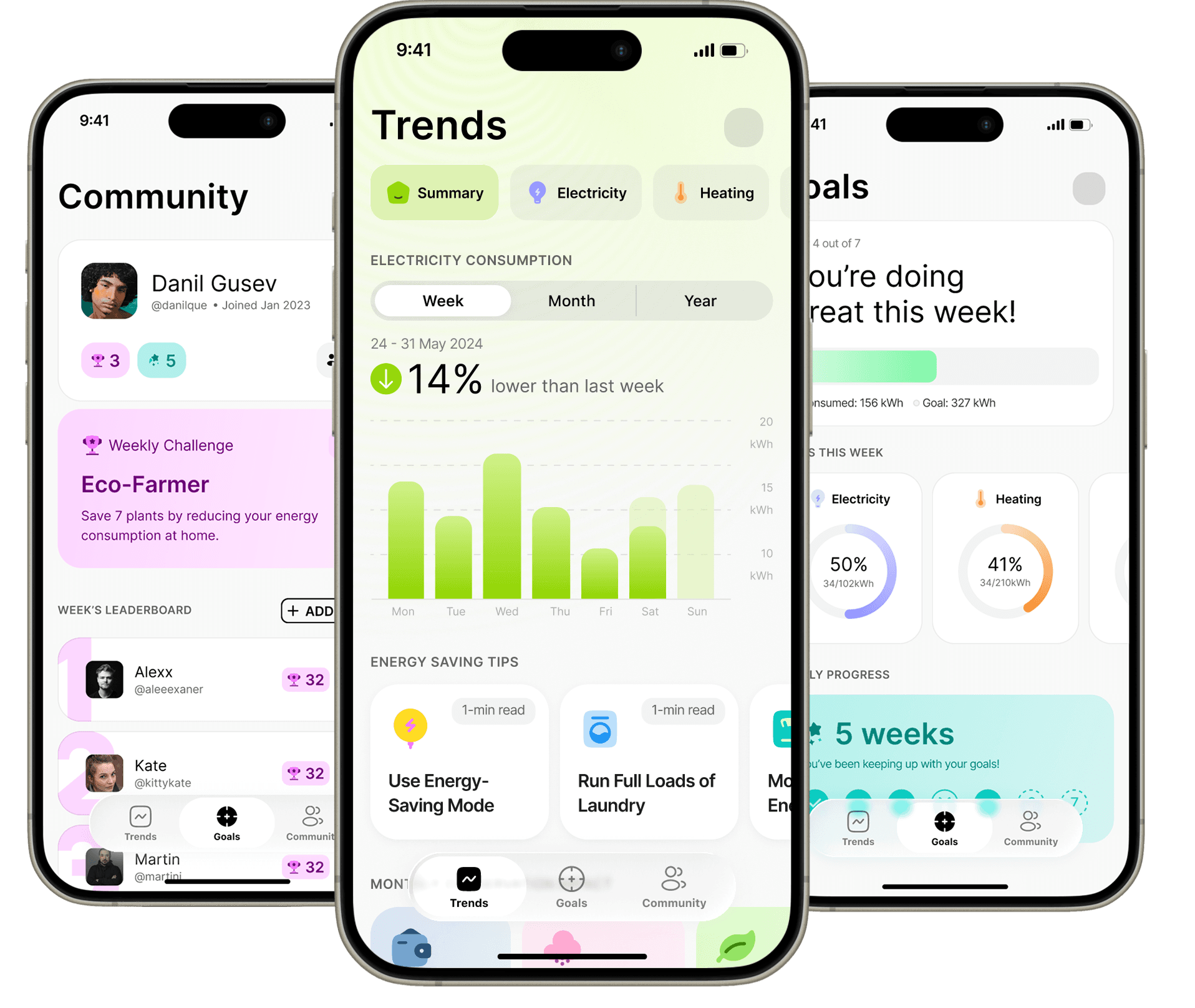 Users can participate in energy-saving challenges and compare their progress with others. Social features such as recognition and feedback introduce a sense of accountability and motivation while maintaining privacy through relative comparisons.